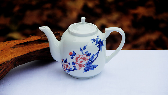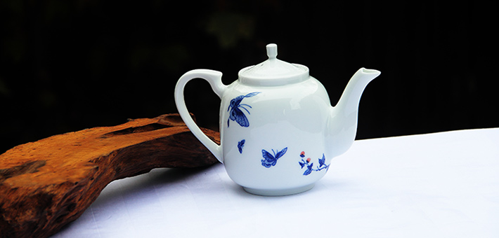 7头手绘青花茶具(缠枝莲)