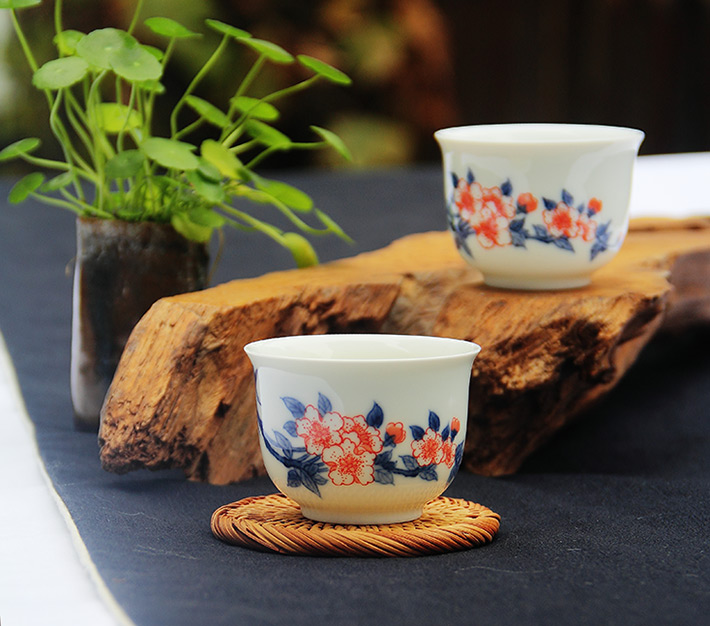 7头釉下青花茶具--满天红