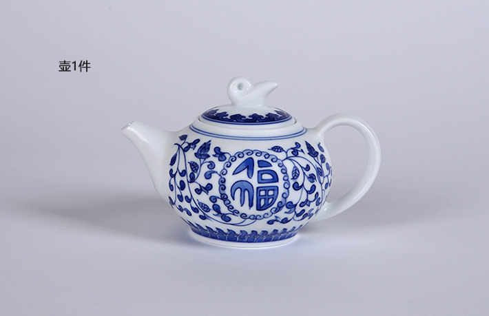 7头釉下青花茶具--满天红