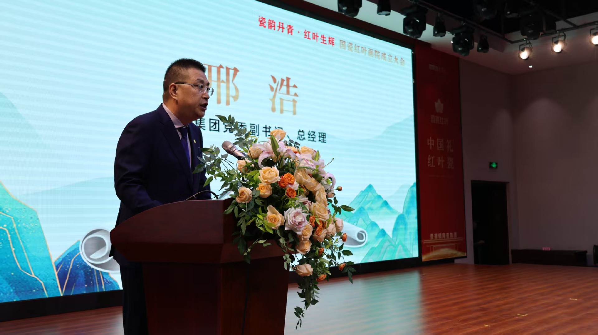 瓷都盛会话传承,红叶溢彩绘新篇。11月9日上午,景德镇陶瓷集团旗下国瓷红叶画院成立大会在红叶陶瓷国瓷馆隆重举行。江西省轻工业联合会理事长郑正春,景德镇市政府党组成员、昌南新区党工委书记余立新,景德镇陶瓷研究院党组书记、院长吴浪,江西陶瓷工艺美院党委委员、副院长朱辉球,江西省轻工业联合会秘书长崔军,景德镇陶瓷协会秘书长陈华清,中国工艺美术大师刘伟,中国工艺美术大师黄景藏,景德镇陶瓷大学设计艺术学院院长余剑峰,景德镇学院陶瓷美术与设计艺术学院党委书记陈后辉,市工信局副局长朱成,市昌南新区党工委委员、管委会副主任张英,景德镇新闻传媒集团副总经理丁添,北京天坛文化产业有限公司CEO王莎莎,哔哩哔哩Vsinger业务部—市场总监刘冰洁及景德镇陶瓷集团领导班子等领导和嘉宾出席大会。