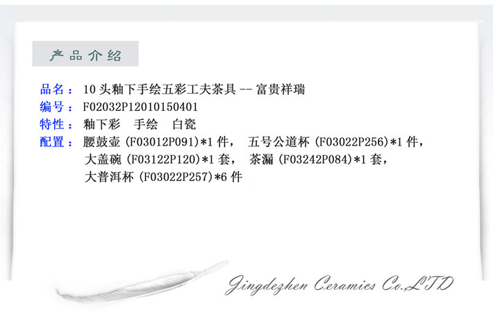 7头釉下手绘五彩茶具--富贵祥瑞