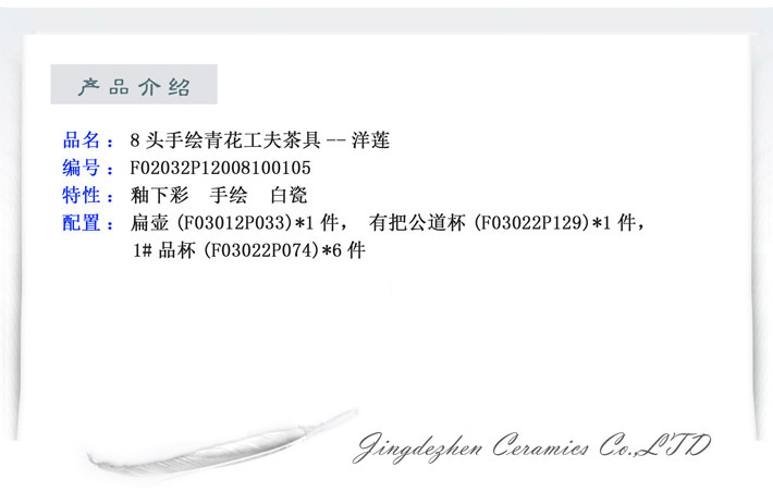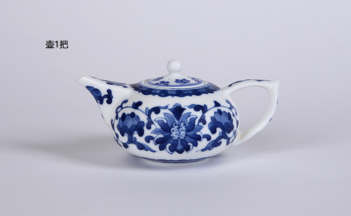 8头手绘青花工夫茶具洋莲