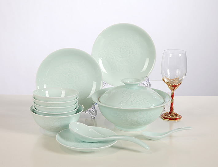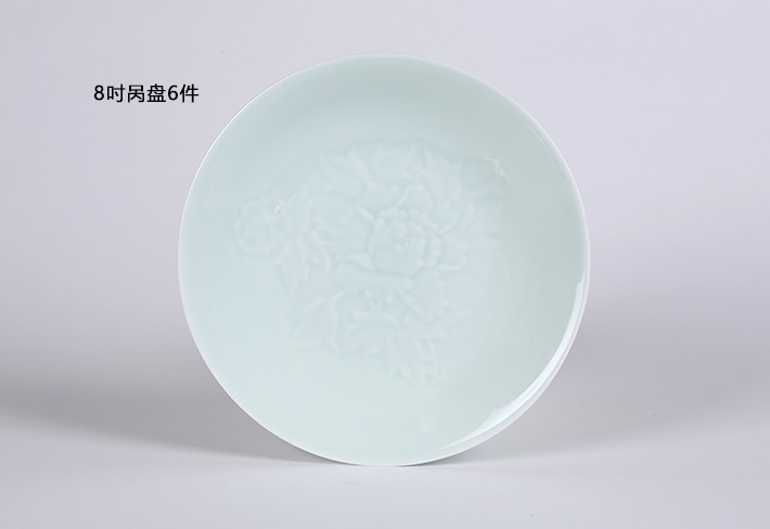 32头影青雕刻餐具--牡丹花