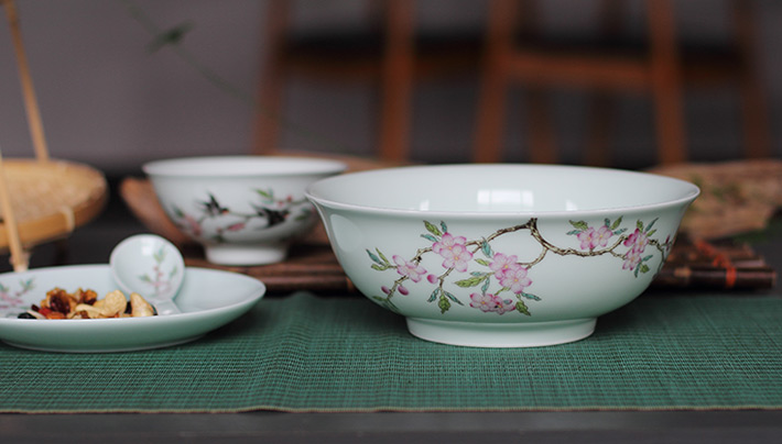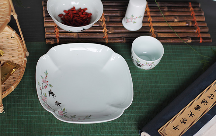 22头青釉中餐具--燕子桃花