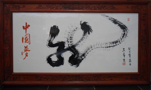 在当天的活动中,王易生的草书一笔龙,已达到了较高的艺术境界,其一气呵成的书写方式在书画界更是一绝。“龙”字的前部象征着中华儿女祈福纳祥,国泰民安;中部象征着中华大地改革之势,波澜壮阔;尾部象征着中华民族伟大复兴、巨龙腾飞、正当其时。“龙尾”,似腾龙奔逐,奇幻莫测,给人极强的心灵震撼。