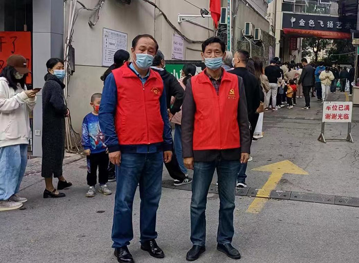 副书记陈华、党员刘志华居住在高风险小区内,但是他们无惧风险,主动请缨,负责值守被封控的楼栋,确保疫情阻断在网格内。