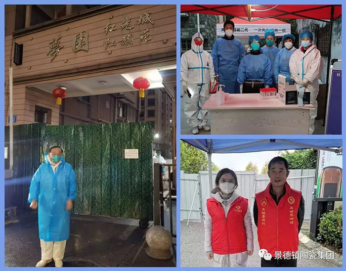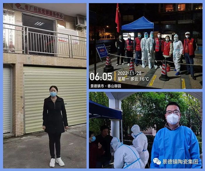 集团党委委员邢浩坚持在杨家村参加志愿服务,党委委员邓必春每天在香山御园小区负责维持全员核酸采集秩序。党委委员胡轶在昌江区新枫街道十八渡社区现场指挥,党委委员副总经理丁添受市委组织部委派到社区组建成立“在职党员干部支援社区疫情防控工作临时党支部,指导景城名郡、观溪郡等五个小区疫情防控工作。副总经理吴爱云、陈渊分别在新厂街道老厂、西交街道淘金岭社区参与疫情防控值守。副总经理袁建国在“公司留守部队”坐镇指挥,连续12天,24小时与特勤组人员同吃同住同驻守在,保护公司生产安全。副总经理江贵生每天6小时在梦园小区值守。