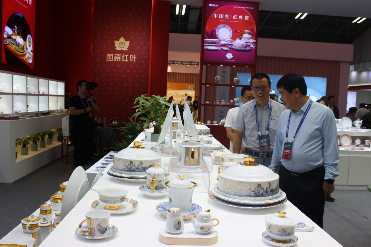 展会期间,展厅内人流如织、气氛热烈非凡,多位贵宾莅临红叶展厅参观指导。党委书记、董事长邓景扬详细介绍了此次参展的多款新品以及国瓷红叶的出海故事和创新成果。各位贵宾对此次国瓷红叶的多款新品给予了高度评价和充分肯定并鼓励国瓷红叶多利用自身优势,积极研发新产品,开拓新巿场,为传承中国传统文化和创新发展做出更大贡献。